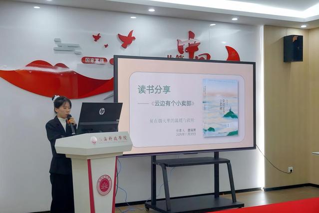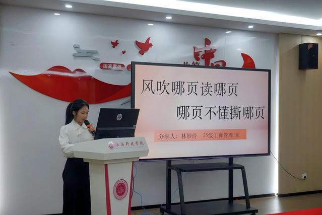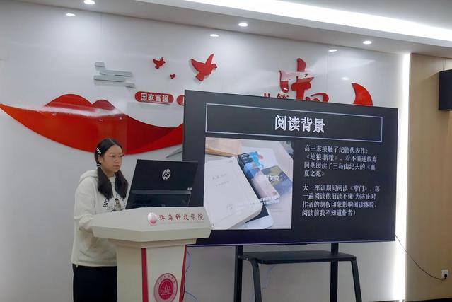 活动伊始,参赛同学带着精心准备的PPT先后登台,围绕多本经典书籍展开精彩分享。从《风吹哪页读哪页,哪页不懂撕哪页》的随性取舍、《影响力》的沟通逻辑,到《追风筝的人》的救赎担当、《云边有个小卖部》的烟火治愈;还有《文化苦旅》的文明叩问、《窄门》的爱与自由思辨、《繁花》的市井印记。同学们的分享或独到或幽默,每段感悟都引发师生强烈共鸣。分享环节结束后,马千惠老师进行点评,她充分肯定了参赛同学的精彩表现,结合自身阅读经历寄语师生“多读书、读好书”,让书籍成为成长路上的良师益友。