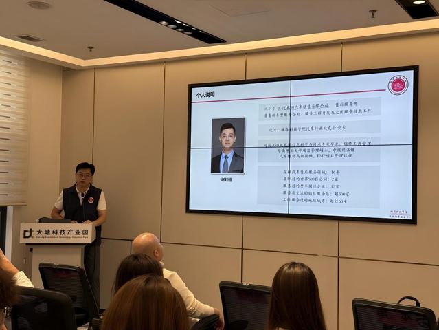 行程尾声,师生抵达位于粤港澳大湾区核心腹地的大塘科技产业园。园区以“打造大湾区智能制造标杆产业链”为愿景,汇聚了众多高新技术企业。在大塘科技产业园区,珠海科技学院汽车行业校友会会长谢钊桓以汽车产业为例,深入浅出地剖析了市场动态、营销模式演变及行业对人才能力需求的变化。他特别强调:“在快速变化的产业环境中,清晰的自我定位,是构筑职业竞争力的关键。”恳切的分享为同学们描绘出清晰的成长路径,也寄托了对我们的殷切期许。